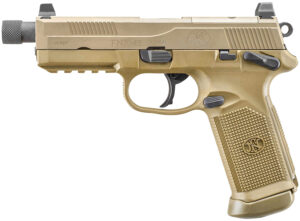 FN 66102272 FNX w/Optic 45 ACP 10rd 5.30″ Black Steel Barrel, Flat Dark Earth Optic Ready/Serrated Stainless Steel Slide & Polymer Frame w/Picatinny Rail, Holosun 407C Red Dot, 5 Mags, Ambidextrous