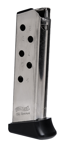 Walther Arms 2246010 PPK 6rd Detachable w/Finger Rest 380 ACP Nickel Steel